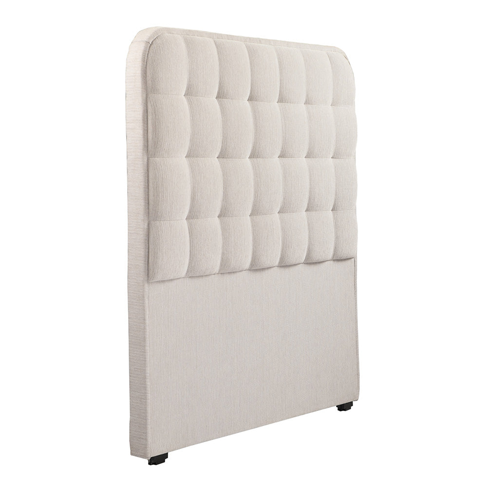 Dale un toque de elegancia y calidez a tu habitación con la Cabecera Creta de diseño moderno. El diseño capitonado en cuadros añade textura y estilo sin sobrecargar el ambiente, mientras que las esquinas superiores redondeadas suavizan su forma, haciéndola perfecta para distintos estilos de decoración, desde lo moderno hasta lo minimalista. Su estructura está fabricada con madera de pino y está tapizada con telas importadas que aportan suavidad y durabilidad. Ideal para quienes buscan confort visual y una pieza que armonice con facilidad en cualquier dormitorio.